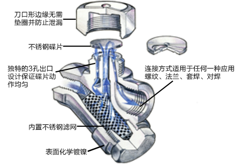 由于碟片是唯一的運(yùn)動部件,維護(hù)起來很方便,無需從管道上拆下疏水閥。
